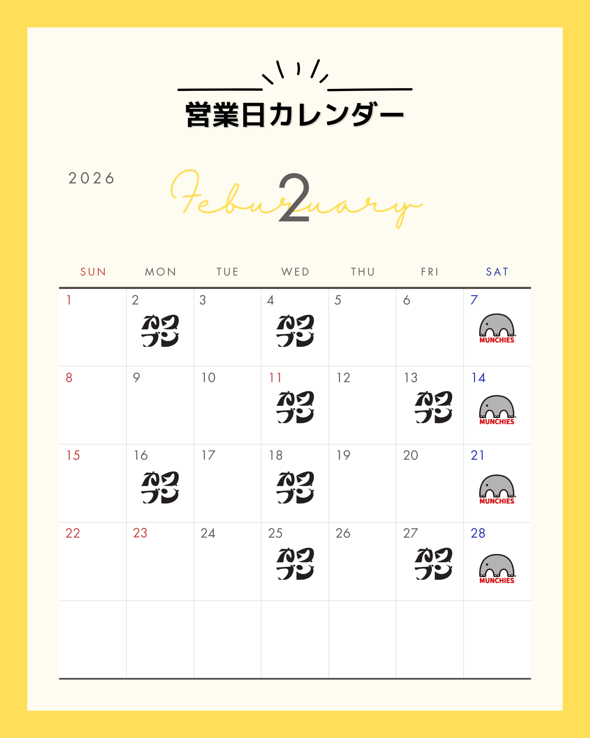 2026年2月分のご予約受付を開始いたしました。